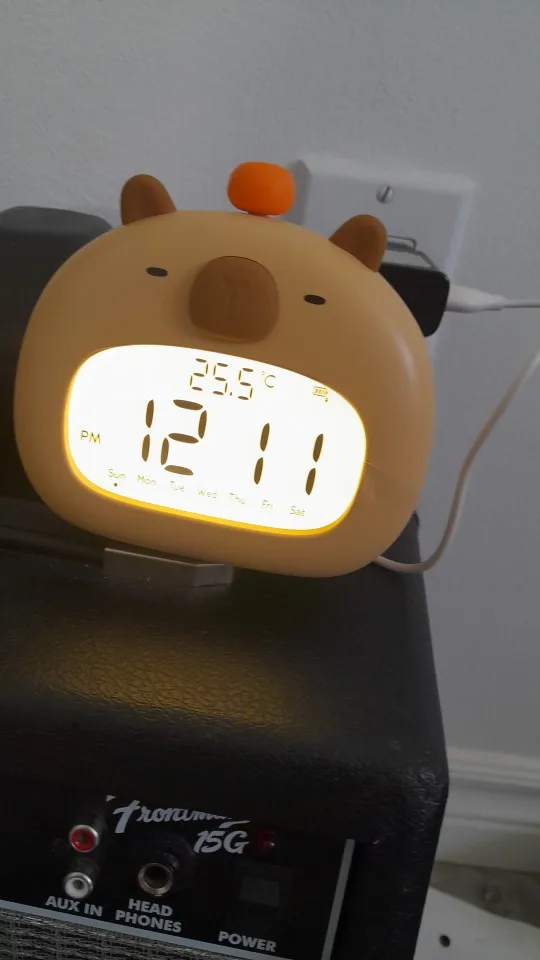 - Features: Night light, temperature display, touch snooze, always-on/energy-saving mode