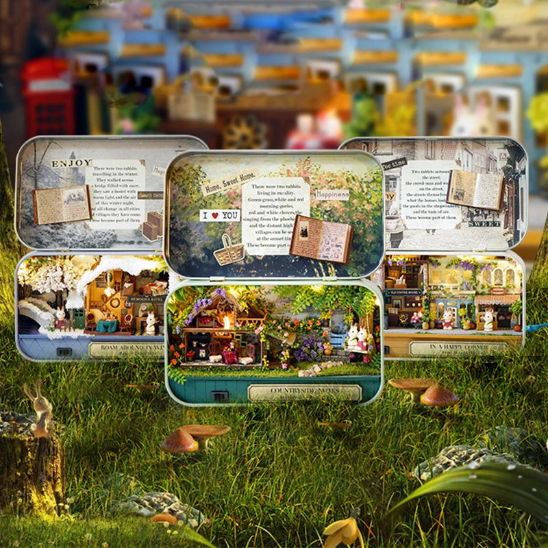 Compact & Nostalgic Design: A beautifully detailed miniature home in a box theater format.