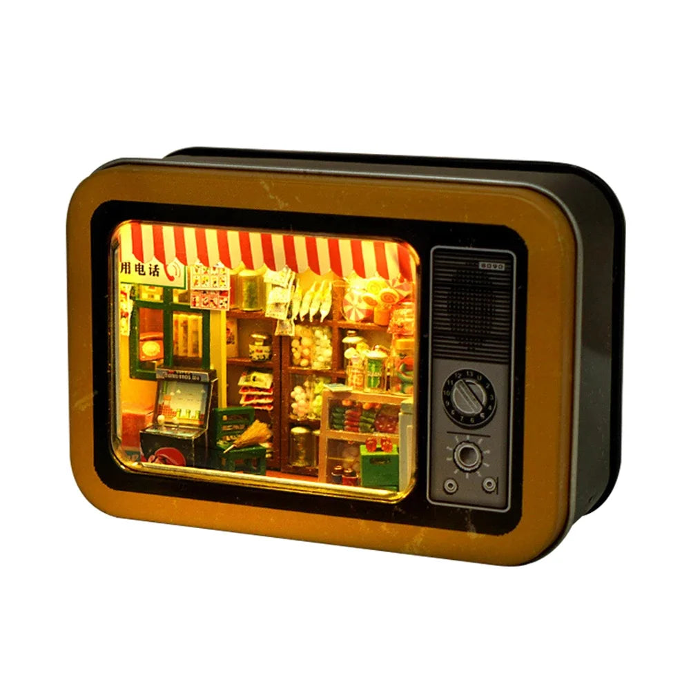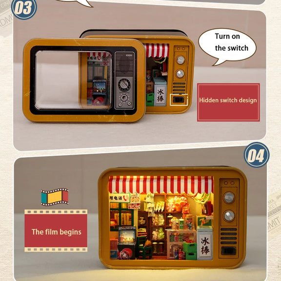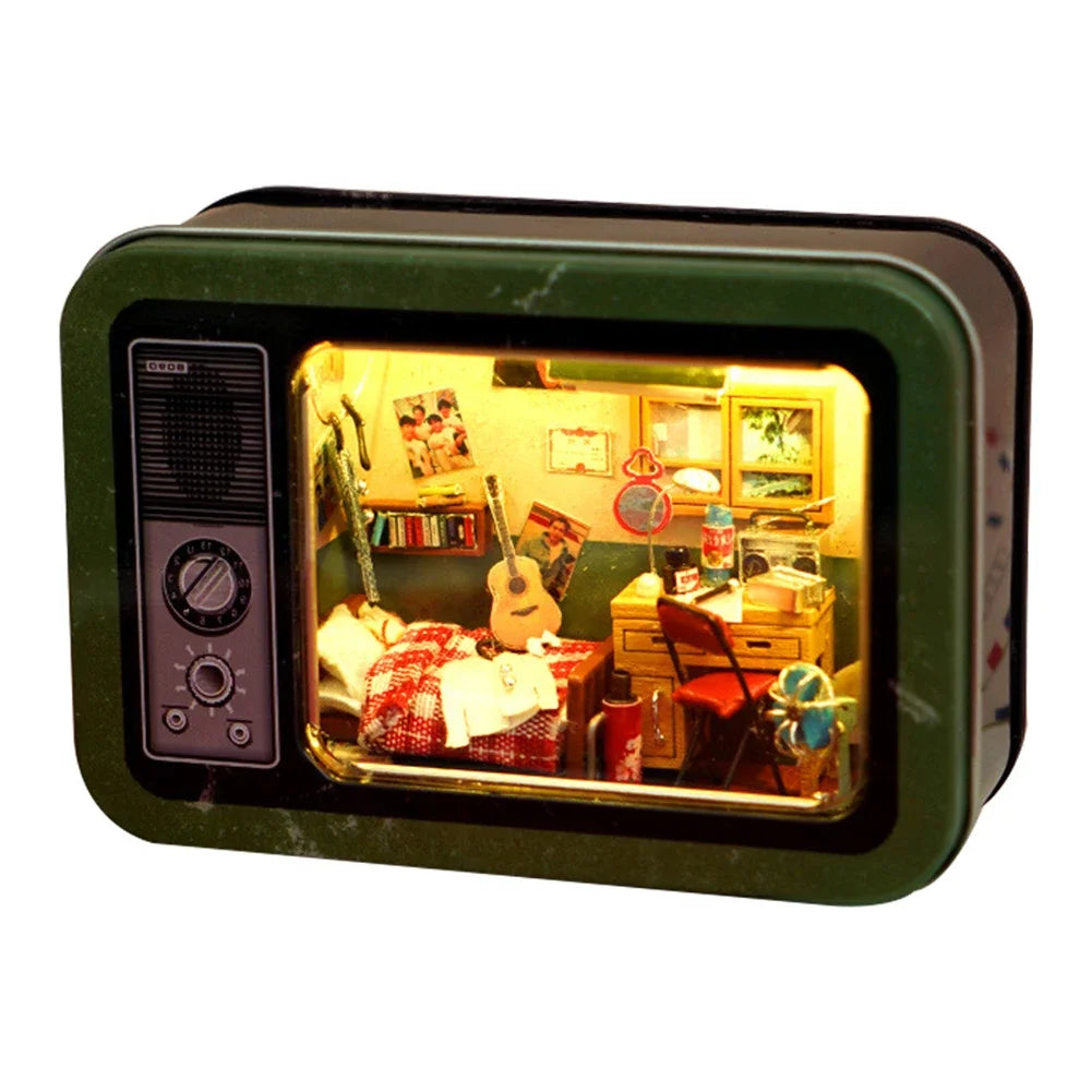 Compact & Intricate Design: A nostalgic bookshelf-style display with tiny books and furniture.