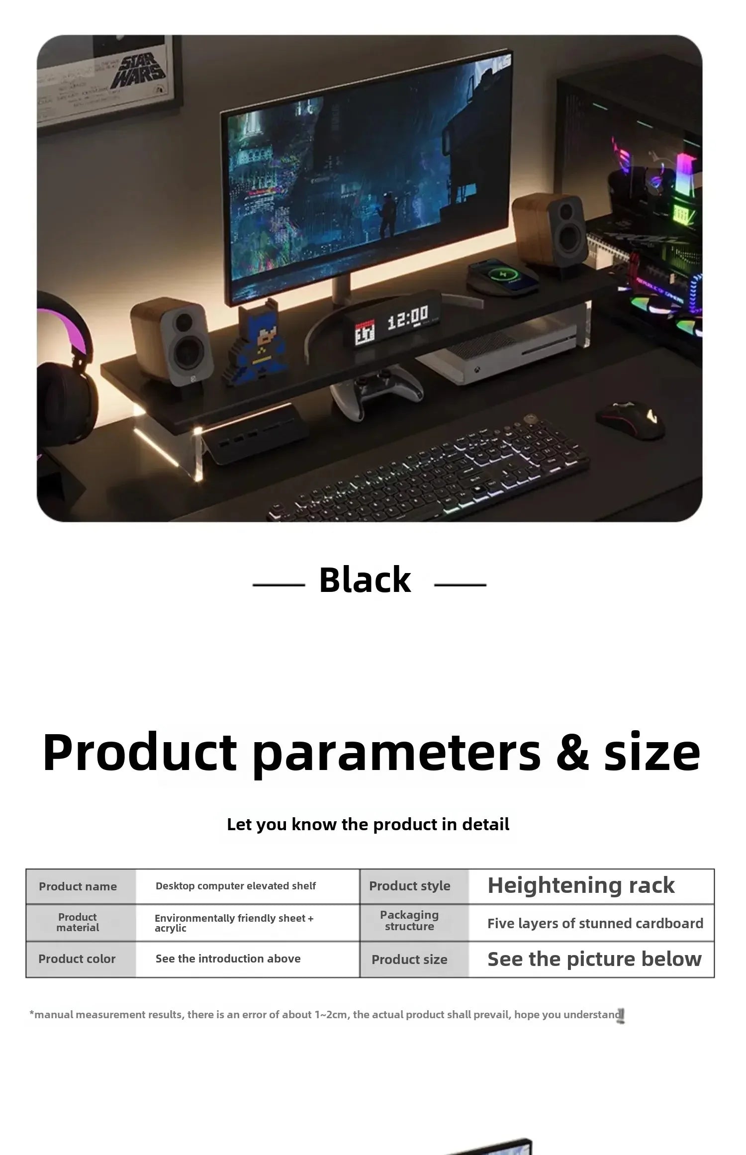 • Dimensions: Fits standard monitors and printers