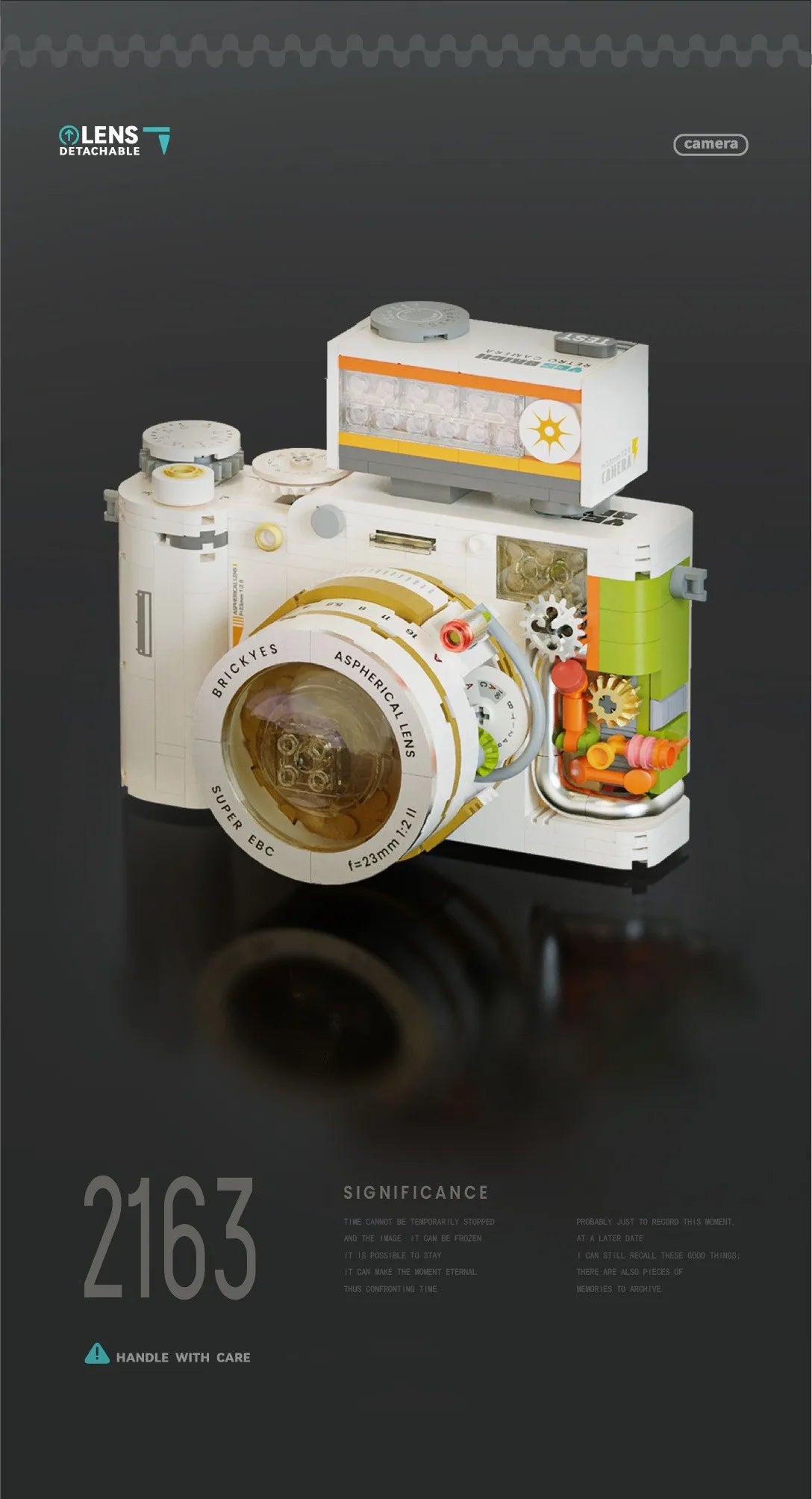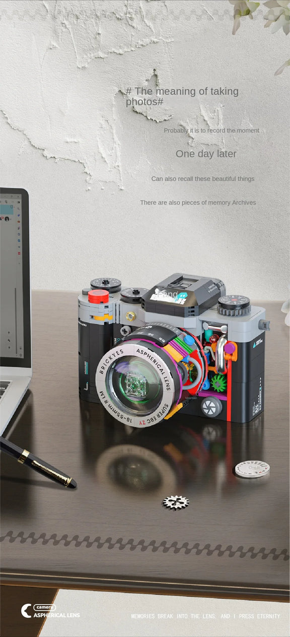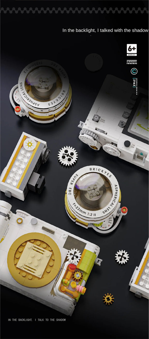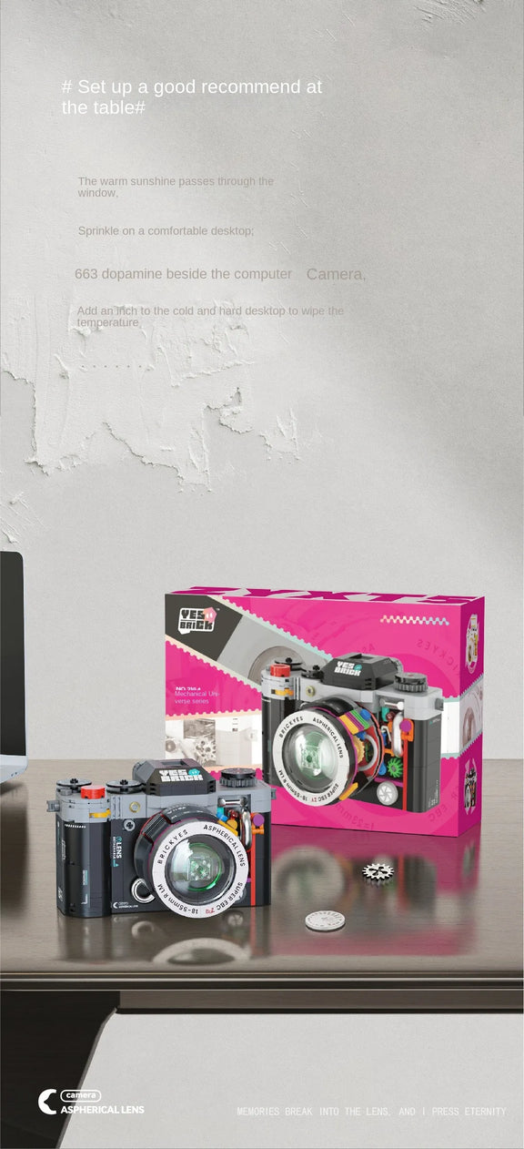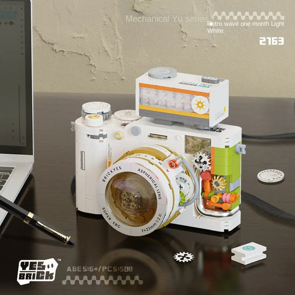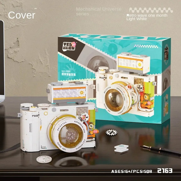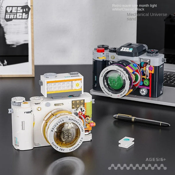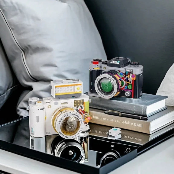 Creative Assembly: Build a retro-style camera with detailed microparticle blocks.