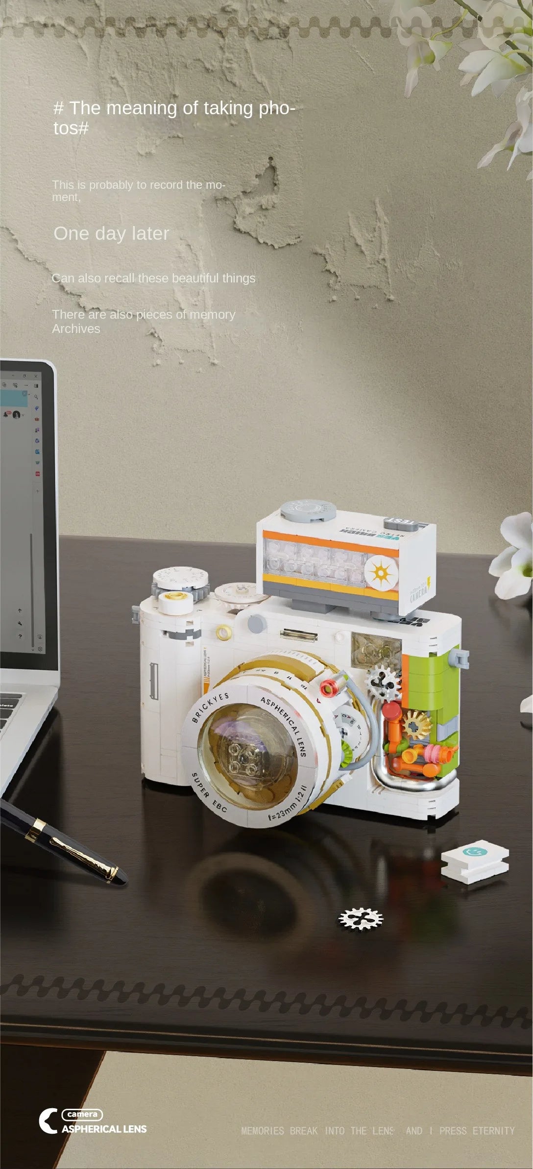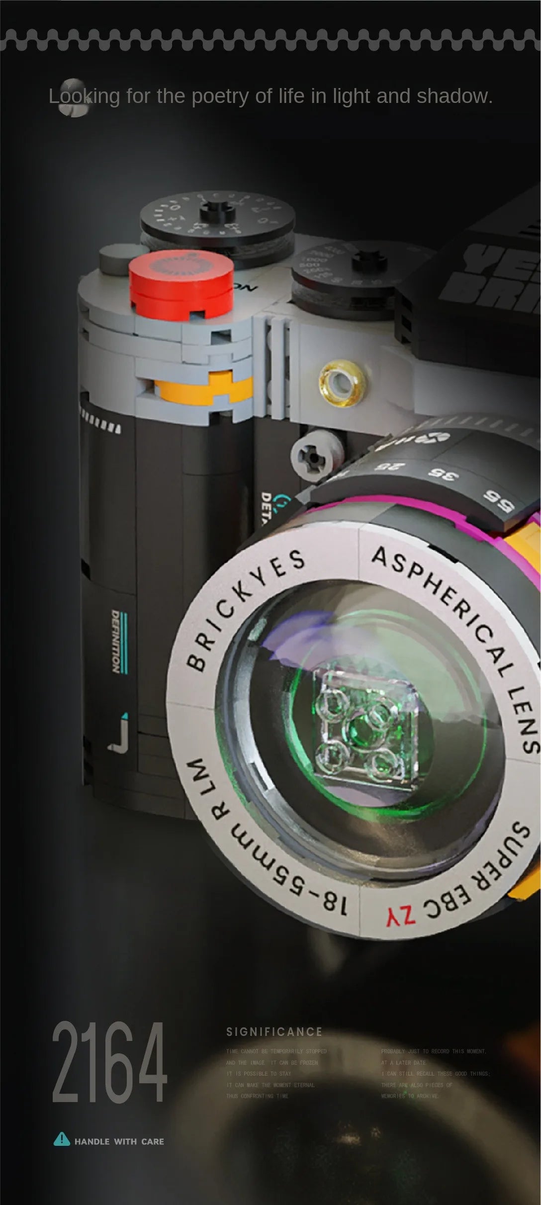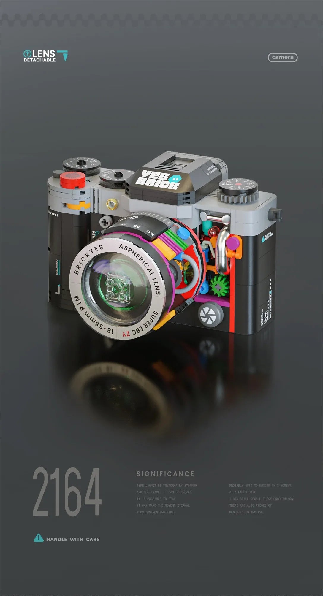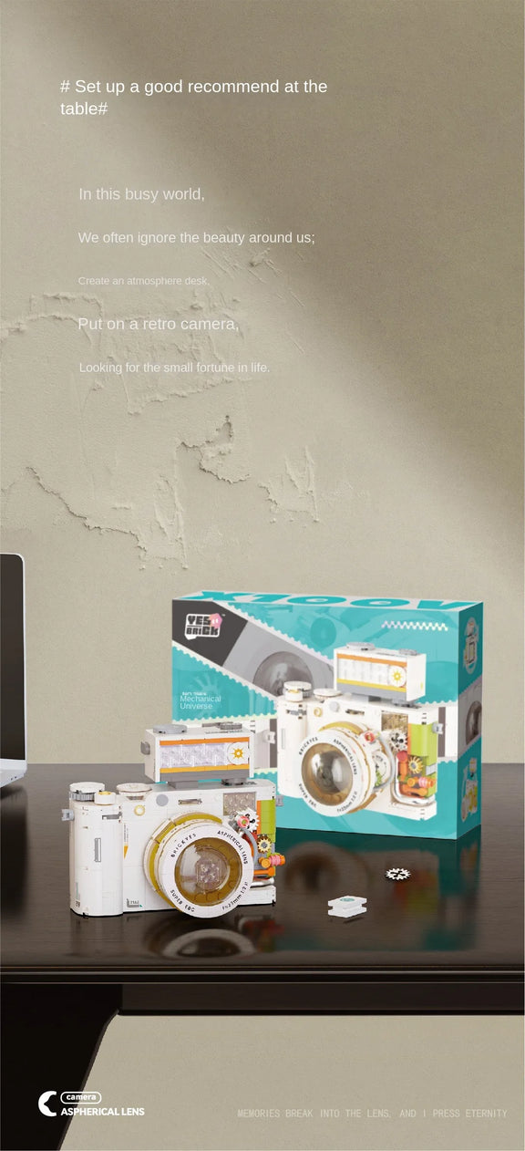 Creative Assembly: Build a retro-style camera with detailed microparticle blocks.